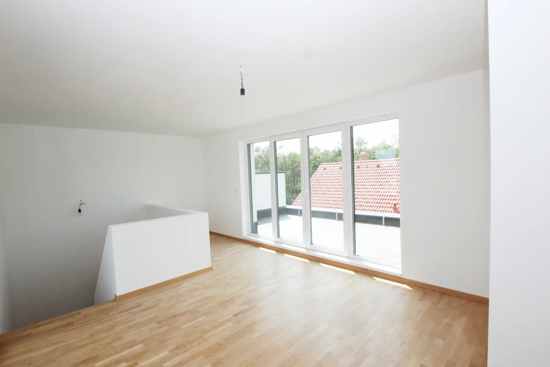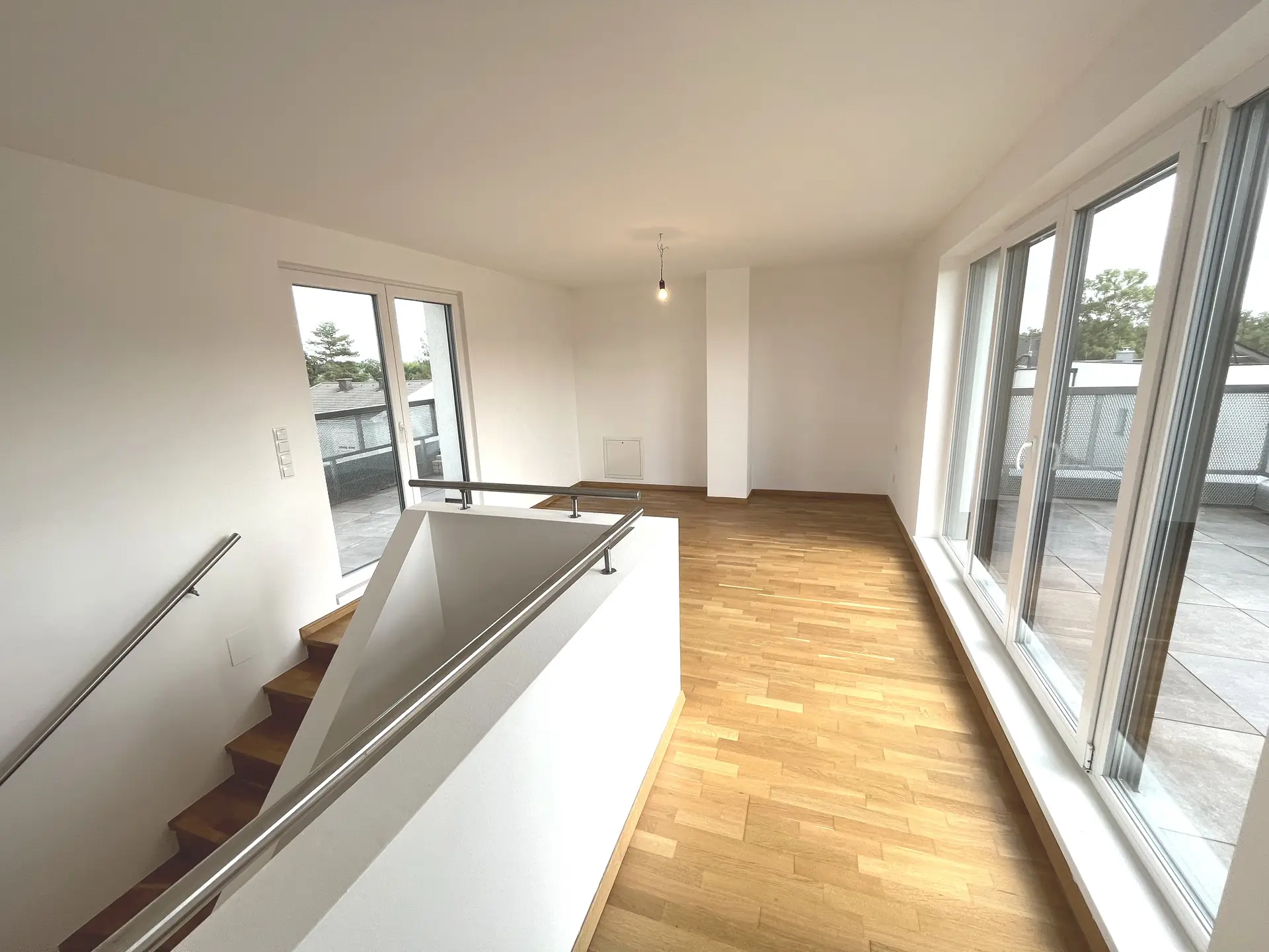Fliesen, Parkett, Fußbodenheizung, Wohnküche / offene Küche, Bad mit Fenster, Badewanne, Dusche, Wasch- / Trockenraum, Luftwärmepumpe, Nordostbalkon / -terrasse, Südwestbalkon / -terrasse, WG geeignet, Abstellraum, Gartennutzung, Niedrigenergiehaus, Außenliegender Sonnenschutz, Öffenbare Fenster, UMTS-Empfang, Rollladen, Gäste-WC, Pultdach, Massiv, Schlüsselfertig mit Keller, Fernblick, Doppel- / Mehrfachverglasung