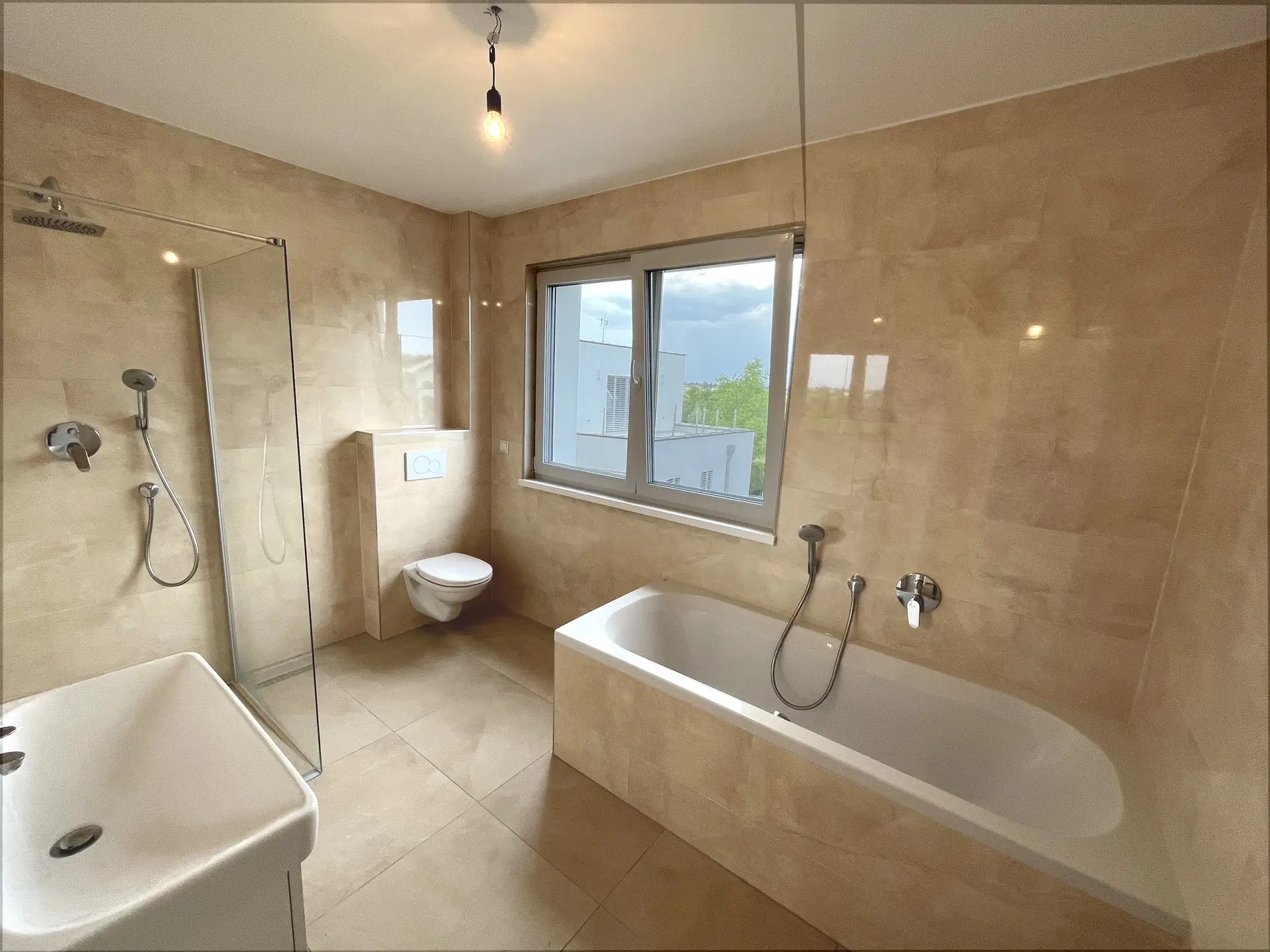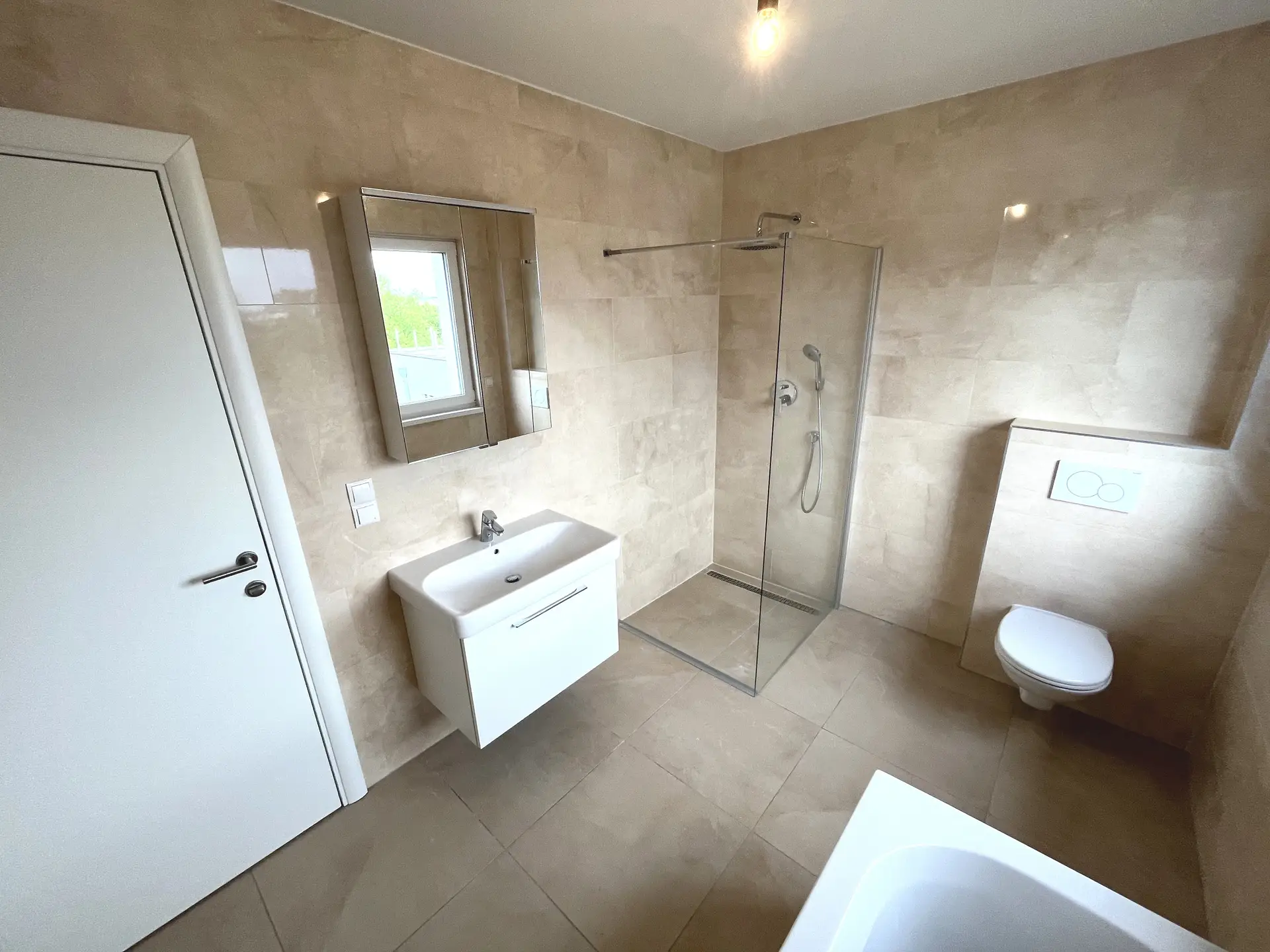 Das Haus ist in einem neuwertigen Zustand. Sowohl die Böden aus Fliesen und Parkett als auch die Fußbodenheizung sorgen für ein angenehmes Wohngefühl. Auch das Badezimmer mit Fenster, Badewanne und Dusche lässt keine Wünsche offen. Zusätzlich gibt es noch einen separaten Wasch- und Trockenraum im knapp 50 m² großen Keller, der für Ordnung und Komfort sorgt.