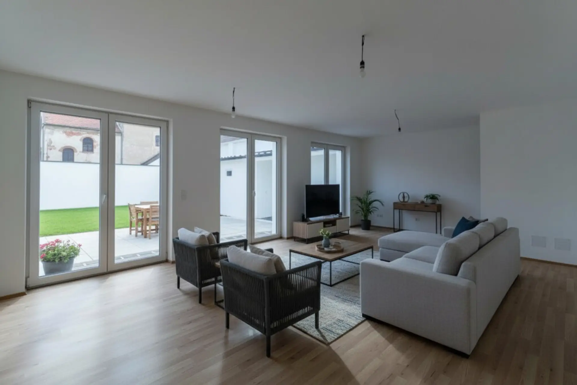 „Die dargestellten Möbel und Einrichtungsgegenstände dienen der besseren räumlichen Vorstellung und wurden mittels KI visualisiert. Sie sind nicht Bestandteil der tatsächlichen Ausstattung der Immobilie.“