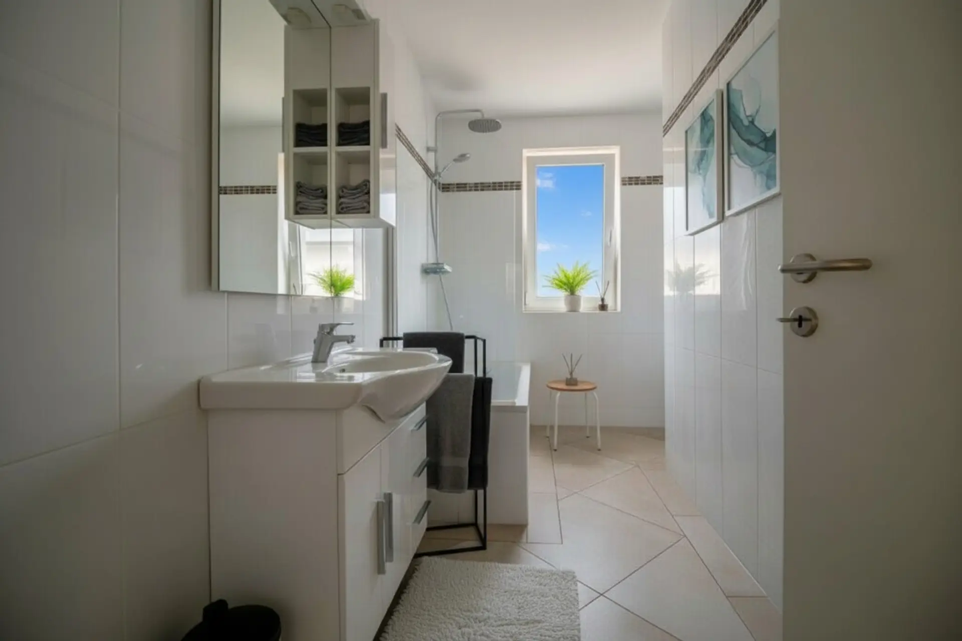 Die Fenster (Niedrigenergieschallschutzfenster, 3-fach verglast), die Terrassentüre und die Eingangstüre sind aus PVC und einbruchshemmend ausgeführt. Das Erdgeschoss ist offen gestaltet - offener Küchen-, Ess- und Wohnbereich. Drei weitere Zimmer befinden sich im Obergeschoss, wo sich auch ein Badezimmer mit Fenster und ein extra WC, ebenfalls mit Fenster, befinden. Das „Master-Schlafzimmer“ hat ein eigenes Badezimmer.