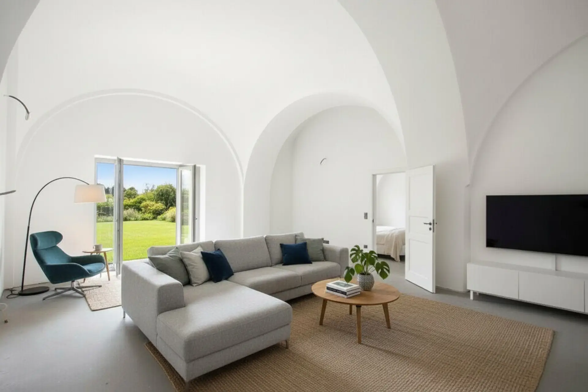 „Die dargestellten Möbel und Einrichtungsgegenstände dienen der besseren räumlichen Vorstellung und wurden mittels KI visualisiert. Sie sind nicht Bestandteil der tatsächlichen Ausstattung der Immobilie.“