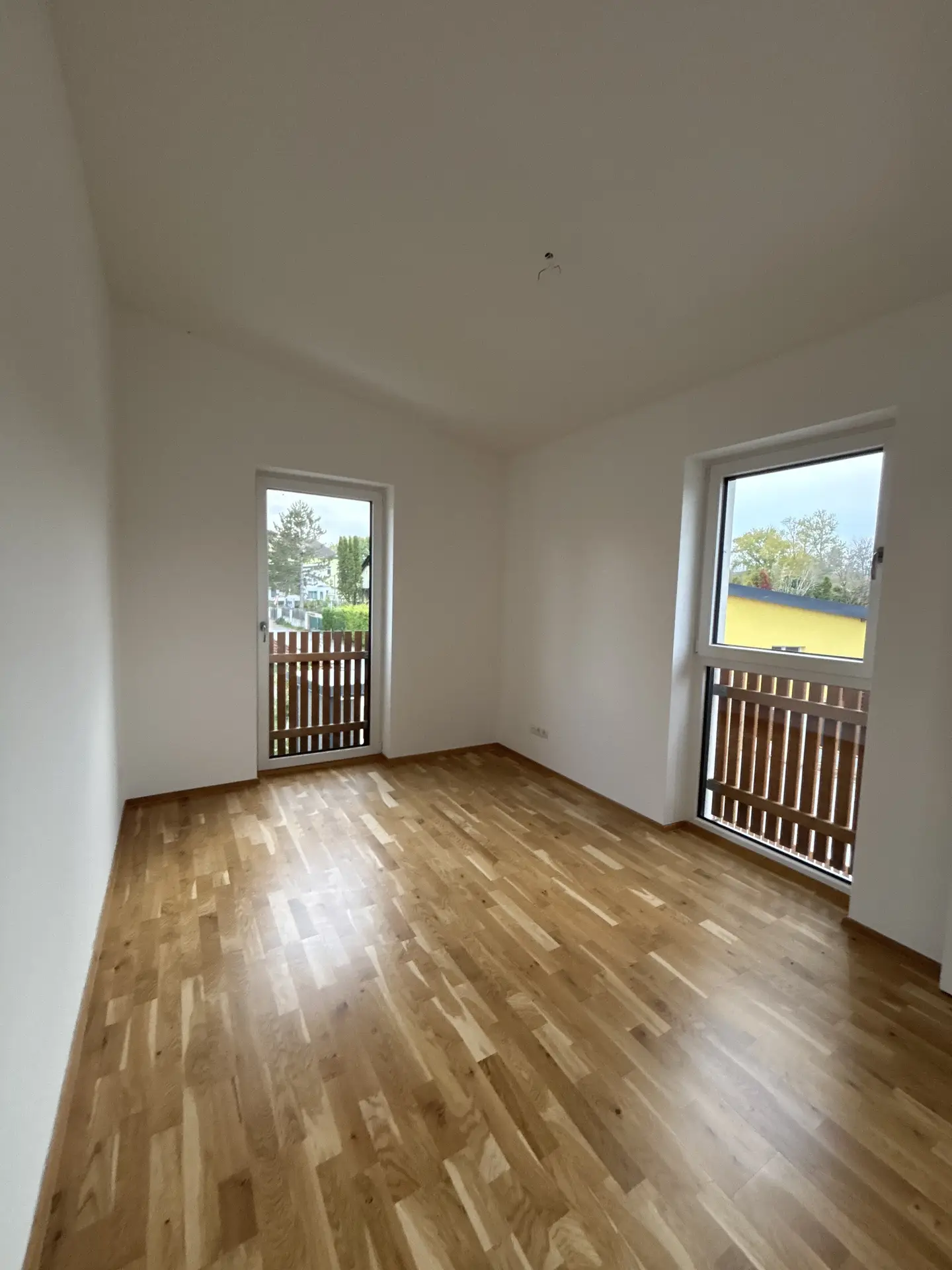 Die Häuser sind mit langlebigen Kunststoff-Alu-Fenstern und einer massiven Alu-Haustüre ausgestattet. Eine moderne, effiziente Luftwärmepumpe sorgt dabei für wohlige Wärme durch eine Fußbodenheizung. Zur Abschattung wurden außerdem elektrische Rollläden installiert.