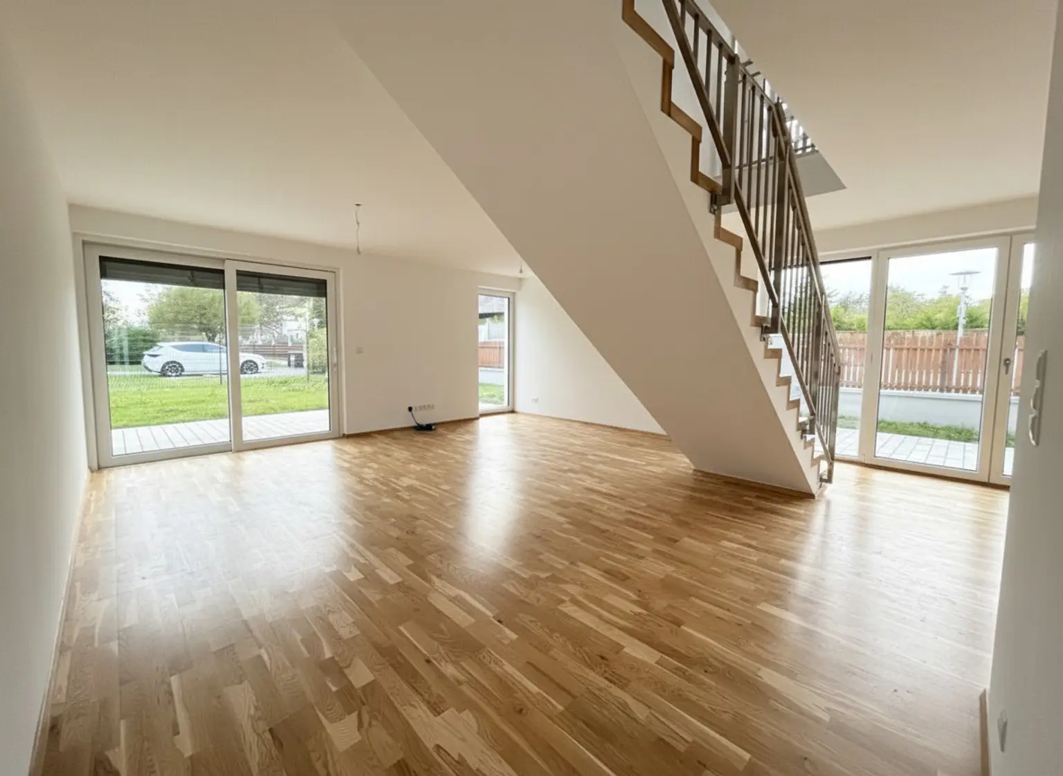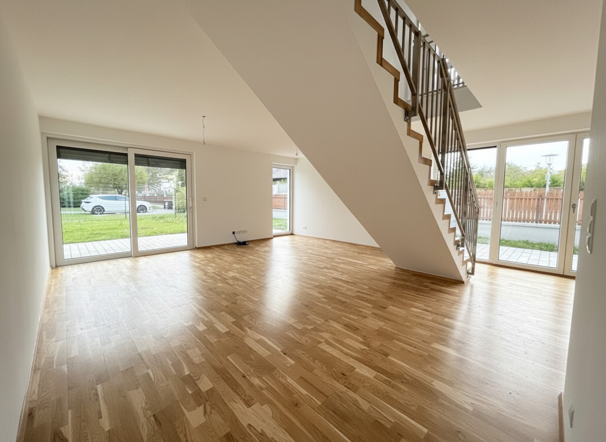 Die Häuser sind mit langlebigen Kunststoff-Alu-Fenstern und einer massiven Alu-Haustüre ausgestattet. Eine moderne, effiziente Luftwärmepumpe sorgt dabei für wohlige Wärme durch eine Fußbodenheizung. Zur Abschattung wurden außerdem elektrische Rollläden installiert.