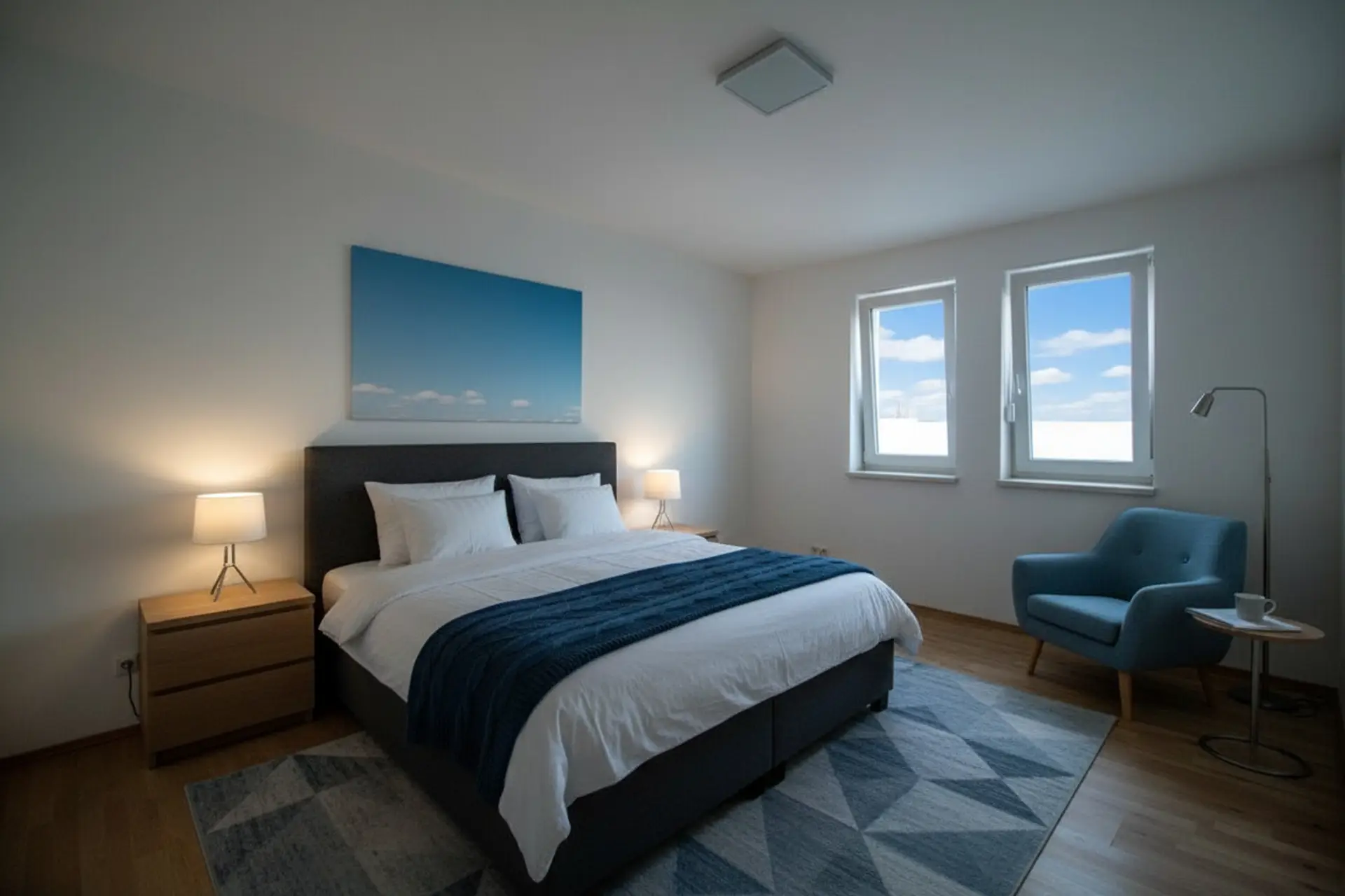 „Die dargestellten Möbel und Einrichtungsgegenstände dienen der besseren räumlichen Vorstellung und wurden mittels KI visualisiert. Sie sind nicht Bestandteil der tatsächlichen Ausstattung der Immobilie.“