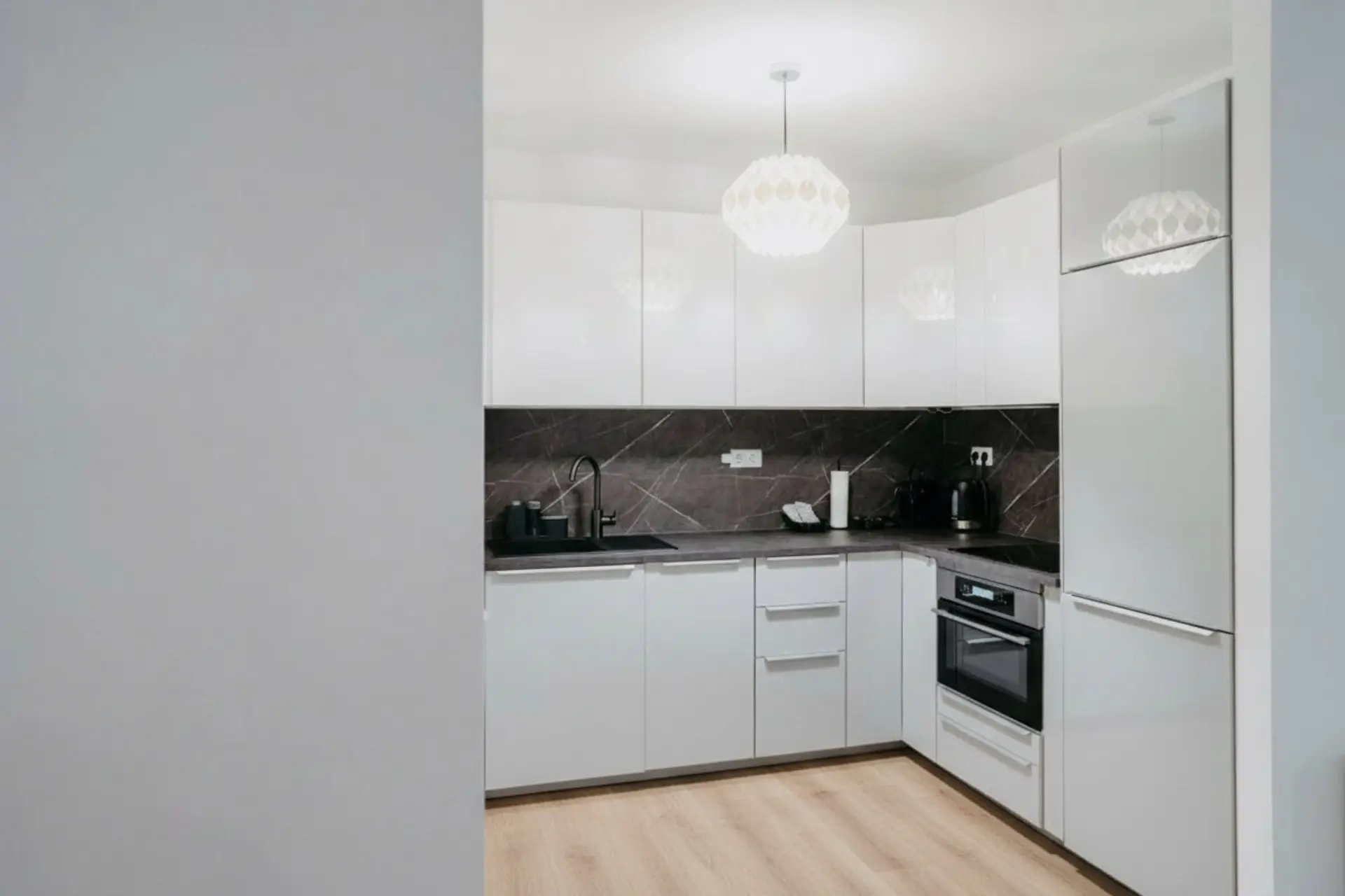 Fliesen, Parkett, Zentralheizung, Einbauküche, Wohnküche / offene Küche, Dusche, Kabel / Satelliten-TV, Kabelkanäle Unterputz, Stehleuchten, Deckenleuchten, Flachdach, Massiv, Kunststofffenster, Bad mit WC