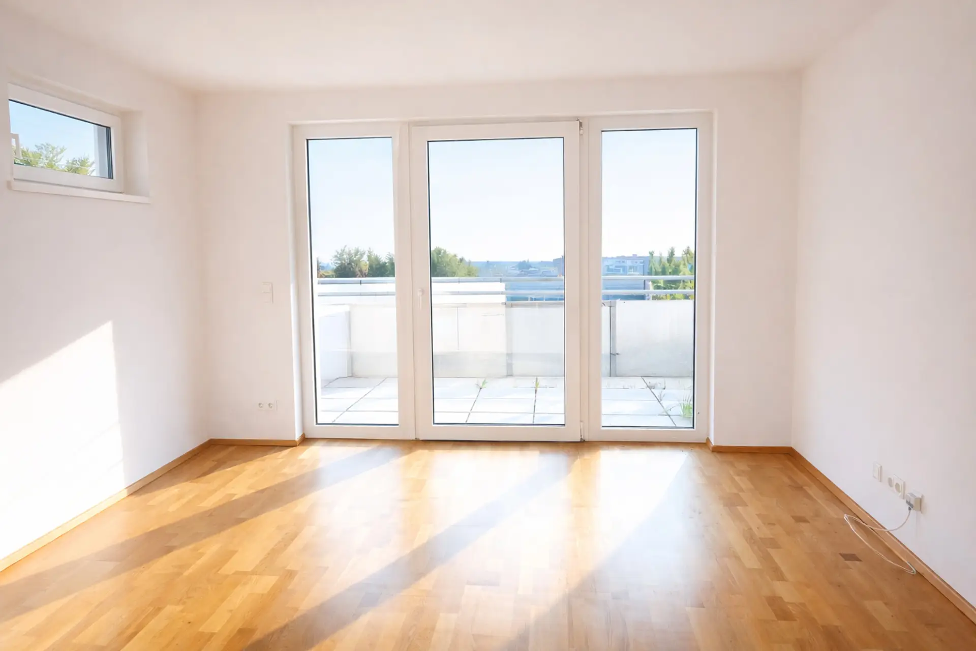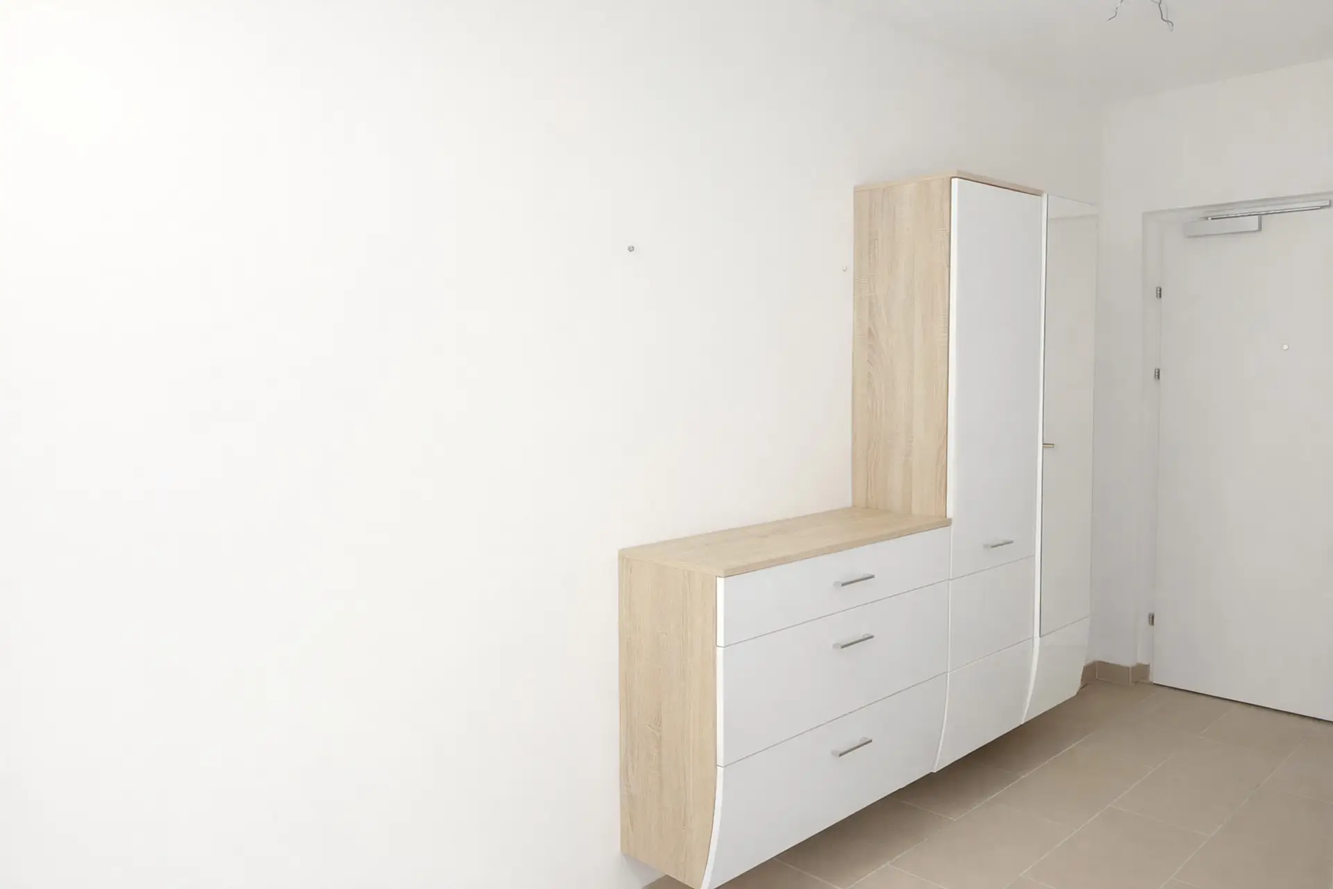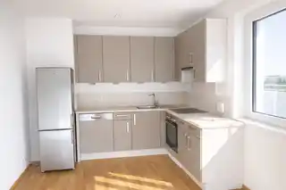 Die schöne 2-Zimmerwohnung im 1. Obergeschoss betritt man durch den gepflegten Eingangsbereich, welcher ausreichend Platz für eine Garderobe sowie den zentralen Zugang zu allen Räumlichkeiten der Wohnung bietet. Unmittelbar rechts vom Eingangsbereich befindet sich das Badezimmer mit großer, verglaster Duschkabine. Die Toilette ist separat angelegt worden. Beide Nassräume sind durchgehend mit modernen Fliesen ausgestattet. Ein Abstellraum schafft Stauraum für nützliche Alltagsgegenstände. Das Schlafzimmer bietet genügend Platz für ein großes Bett und einen Wandschrank. Der Wohn- Essbereich ist mit einer Einbauküche sowie modernen Gerätschaften ausgestattet. Von diesem haben Sie Zugang zum Balkon. Die großen Fenster sorgen für viel Licht im Wohnraum, der helle Parkett lässt den Raum offen und freundlich wirken. Der sonnige, idyllische Balkon gewährt Ruhe und Erholung für Ihren Feierabend oder das sonntägliche Frühstück im Freien. Eine Fußbodenheizung sorgt auch an kalten Winterabenden für warme Füße.