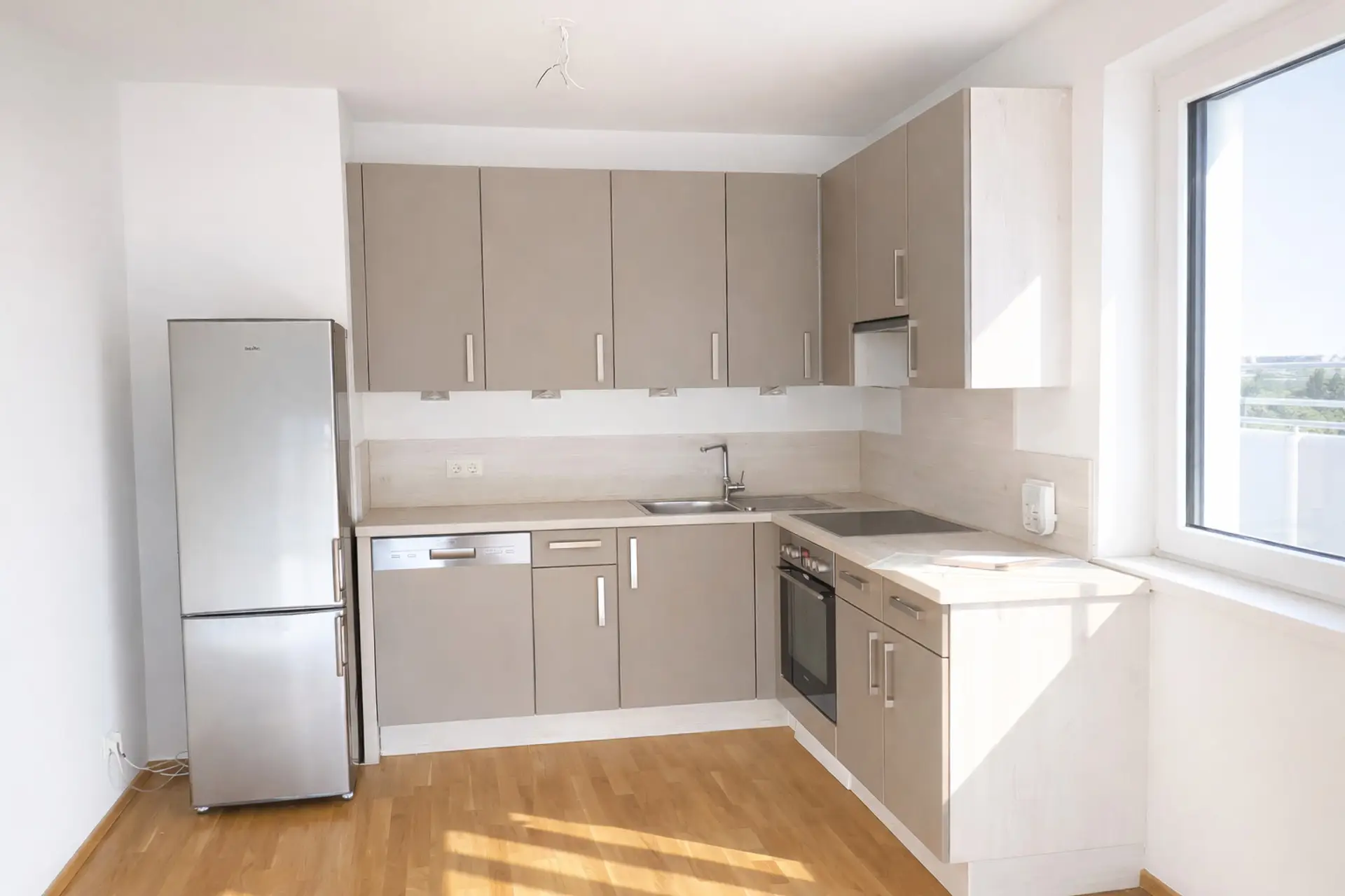 Fußbodenheizung, Wohnküche / offene Küche, Personenaufzug, Ostbalkon / -terrasse, Dusche, Parkplatz, Luftwärmepumpe, Deckenleuchten, Toilette, Flachdach, Fernblick, Bad mit WC