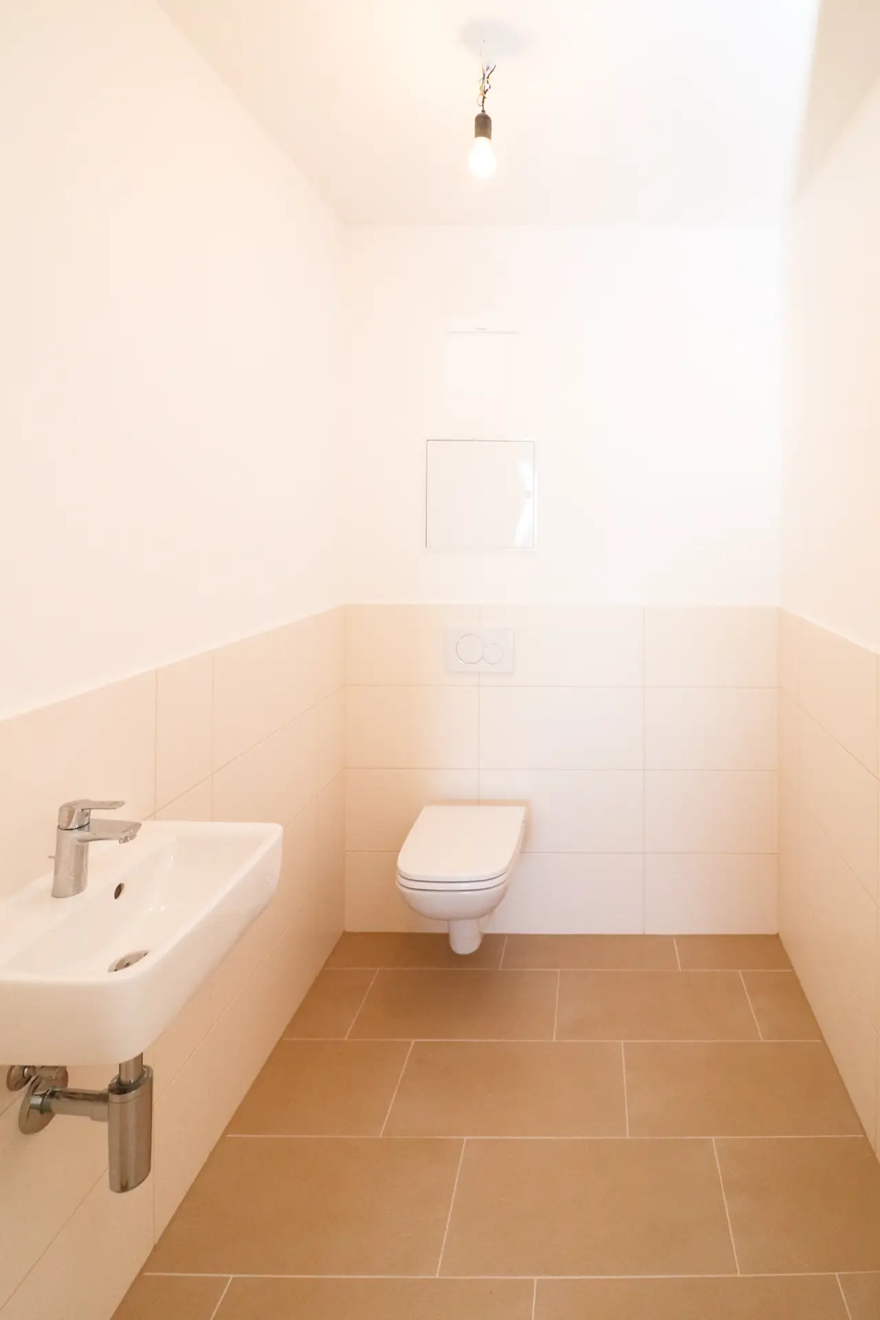 Die schicke 4-Zimmerwohnung im 1.Obergeschoss betritt man durch den gepflegten Eingangsbereich, welcher ausreichend Platz für eine Garderobe sowie den zentralen Zugang zu allen Räumlichkeiten der Wohnung bietet. Das Badezimmer mit Dusche ausgestattet und es gibt ein separates WC. Beide Nassräume sind durchgehend mit modernen Fliesen ausgestattet. Ein Abstellraum schafft Stauraum für nützliche Alltagsgegenstände. Die Schlafräume sind ca. gleich groß, wobei sich als Master-Bedroom das rechte auszeichnet, da es eine Spur größer ist. Die zwei weitere Schlafraum bietet sich idealerweise als Kinderzimmer oder Büro an, z.B. um Homeoffice zu betreiben. Der Wohn- Essbereich ist mit einer Einbauküche sowie modernen Küchengeräten ausgestattet. Von diesem Raum aus hat man Zugang zum Balkon. Die großen Fenster sorgen für viel Licht im Wohnraum, der helle Parkett lässt den Raum offen und freundlich wirken. Der sonnige, idyllische Balkon gewährt Ruhe und Erholung für Ihren Feierabend oder ein sonntägliches Frühstück im Grünen. Eine Fußbodenheizung sorgt auch an kalten Winterabenden für warme Füße.